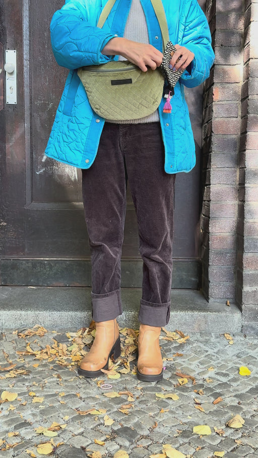 The mara mea x Wolke Hegenbarth holiday feeling bum bag in olive green and midi size is the perfect invitation to your next walk in the woods! With its practical pocket size, it offers enough space for all your essentials that you can never be without. The comfortable fit and robust gunmetal hardware ensure that you can concentrate fully on exploring nature. This stylish bum bag combines functionality with a relaxed feeling of happiness. The carrying strap can be easily adjusted to your desired length, so that the crossbody bag adapts perfectly to your needs. Get ready for wonderful days outdoors! Let the mara mea x Wolke Hegenbarth holiday feeling bum bag in midi size and vibrant olive green be your companion.